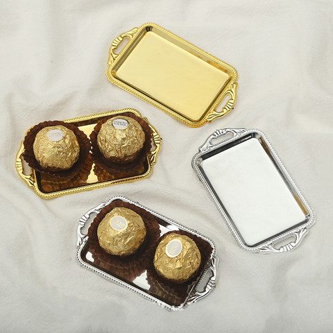 กล่องขนมพลาสติกสี่เหลี่ยมสีทองถาดของขวัญกล่องจานสำหรับงานเลี้ยงงานแต่งงานของที่ระลึกงานเลี้ยงตกแต่งกล่องช็อคโกแลตสีทอง
