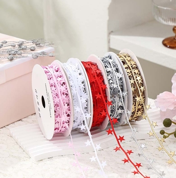 ริบบิ้นลายดาว10หลาสำหรับงานเลี้ยงงานแต่งงานของขวัญตกแต่งของขวัญของขวัญของขวัญแพคเกจดาวริบบิ้นแบบทำมือ