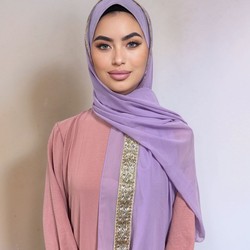 ผ้าพันคอฮิญาบยาวประดับมุกผ้าชีฟองสำหรับสตรีขนาด70*180ซม. มีไข่มุกประดับด้วยเพชรสต็อก